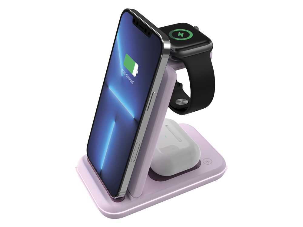 Беспроводное зарядное устройство 3-в-1 CANYON WS-304 (CNS-WCS304B), 15W, розовый