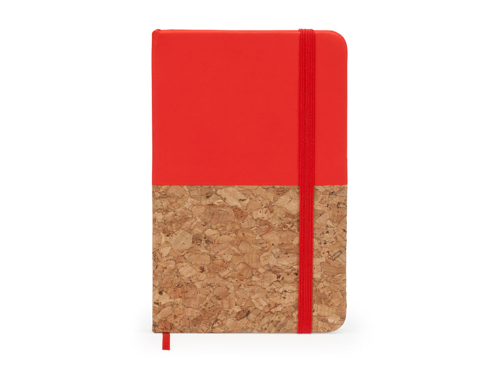 Блокнот формата А6. Комбинированная обложка из искусственной кожи и пробки. 80 нелинованных листов. Также у блокнота есть ляссе и резинка для фиксации.