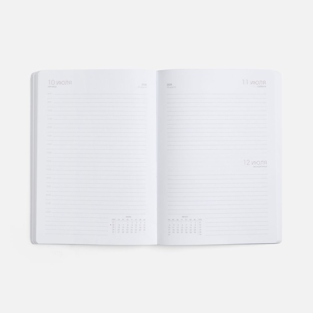 Гибкая обложка ежедневника выполнена из материала Latte, красный РР. Внутри корешка — специальное место для крепления ручки размером до 15х0,9 см.