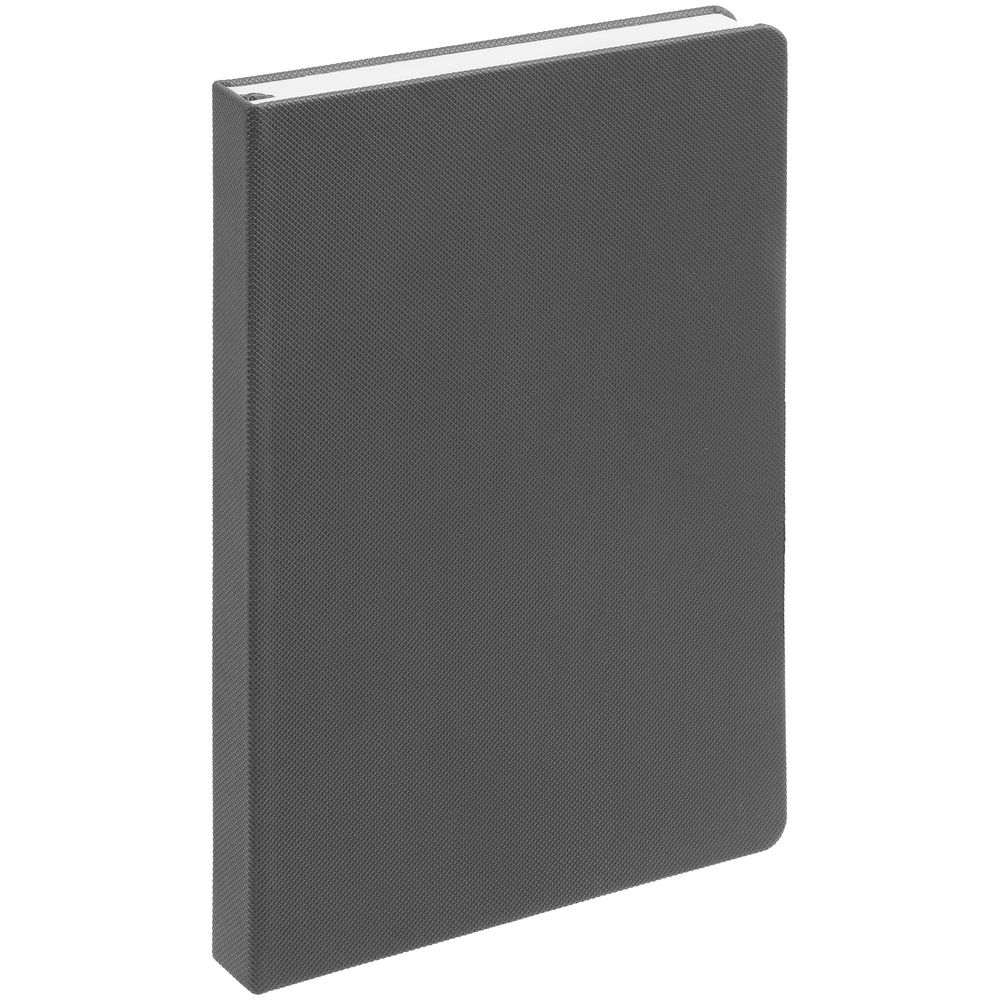 Ежедневник с твердой обложкой, выполнен из материала Canyon, темно-серый ЕЕ, дополнен ляссе в цвет обложки.