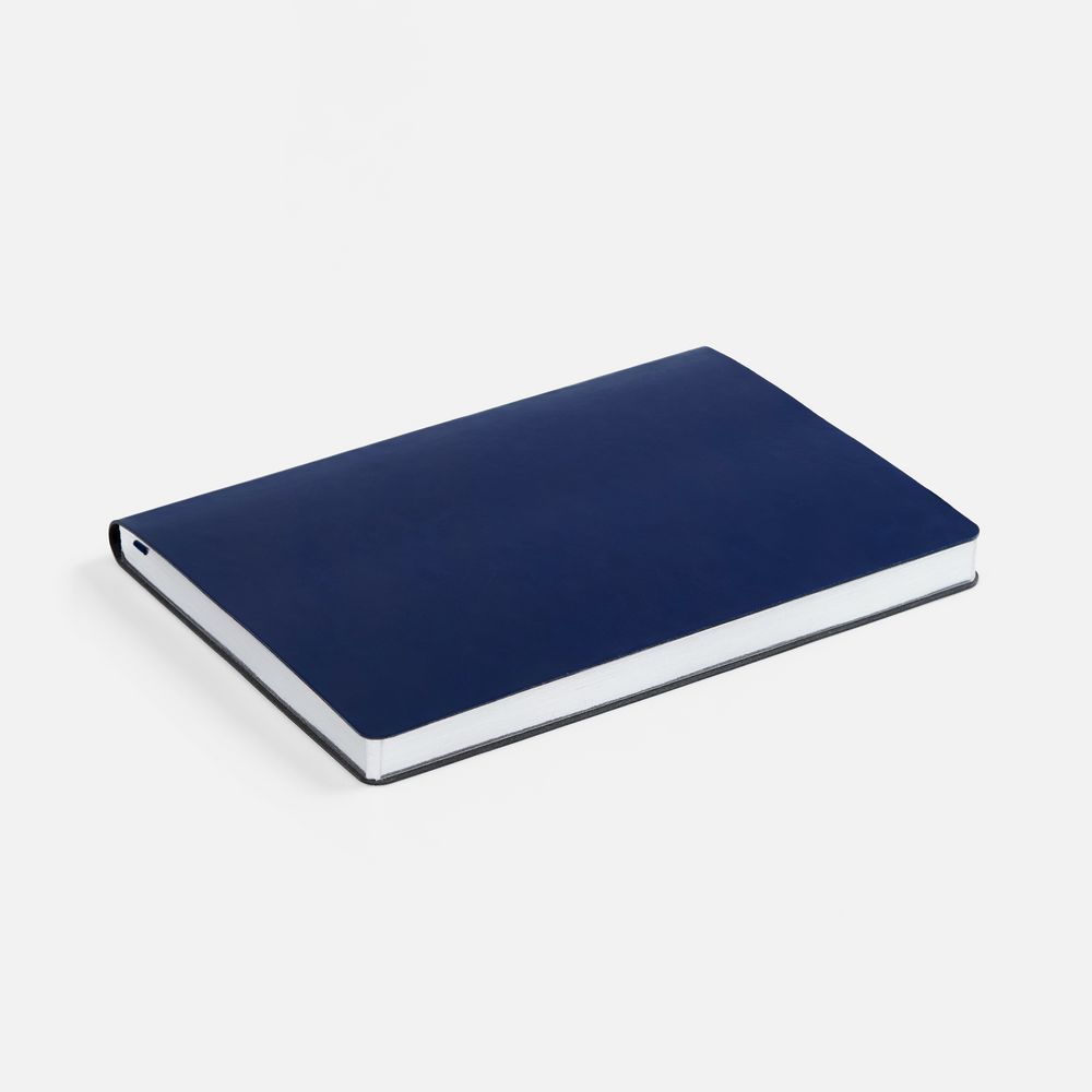 Ежедневник с гибкой обложкой, выполнен из материала Nebraska, синий HH, дополнен ляссе темно-синего цвета.