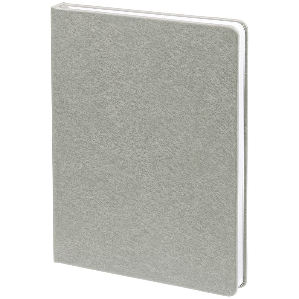 Ежедневник с твердой обложкой. Выполнен из материала Latte, серый СС, дополнен ляссе в цвет обложки.
