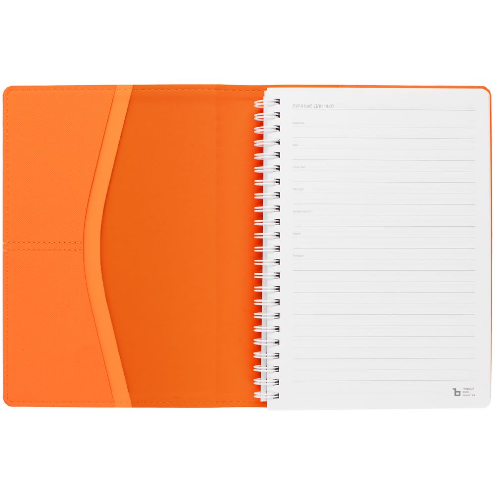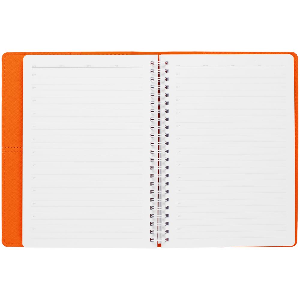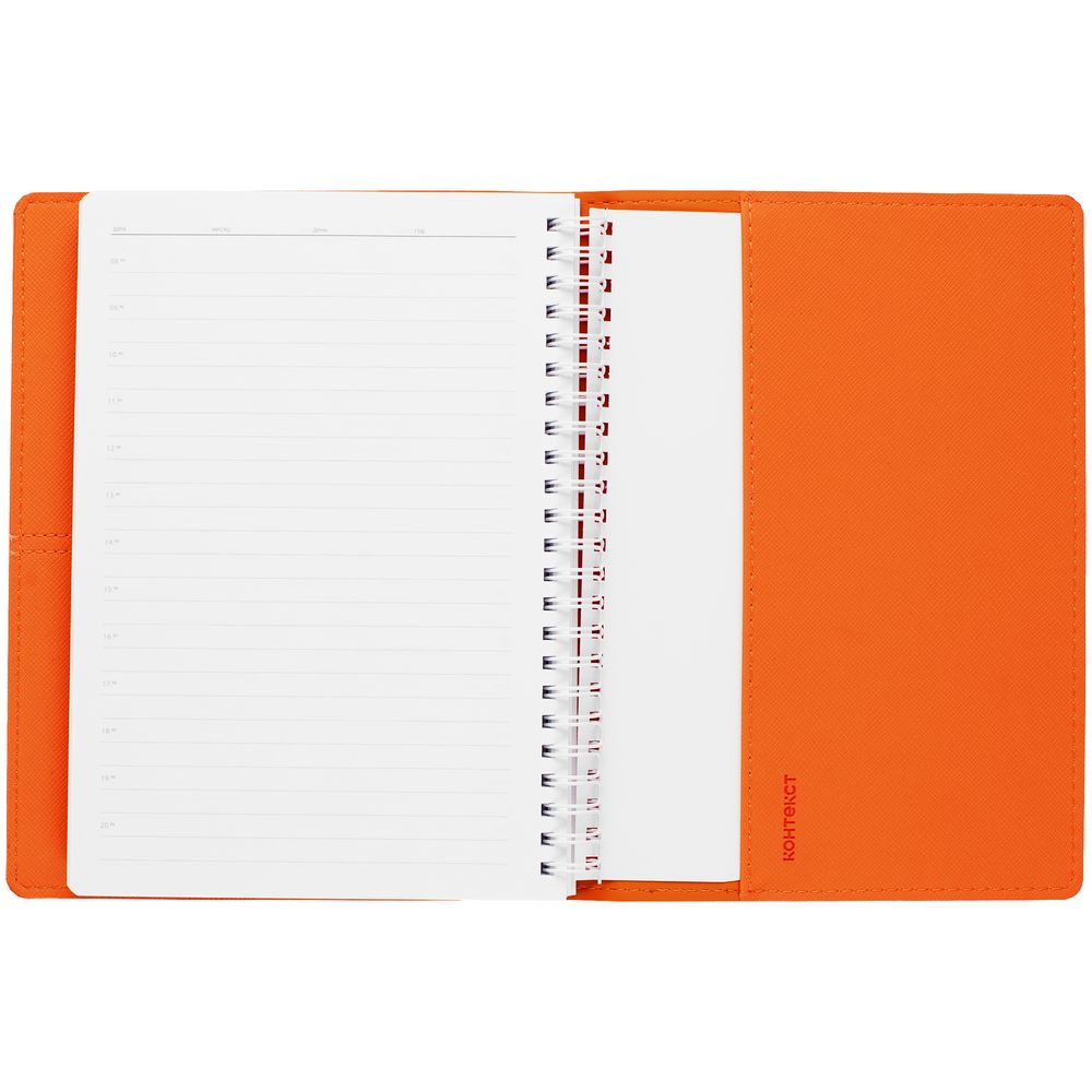 Ежедневник с блоком на пружине в твердой обложке, выполнен из материалов Nice Touch, оранжевый ОО, Soft Touch Pearl и Soft Touch оранжевый.