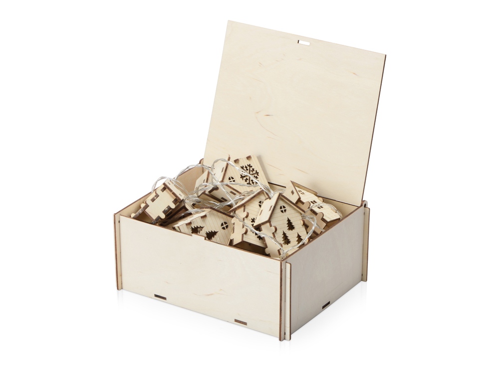 Елочная гирлянда с лампочками Зимняя сказка деревянная + деревянная коробка с наполнителем-стружкой Ларь