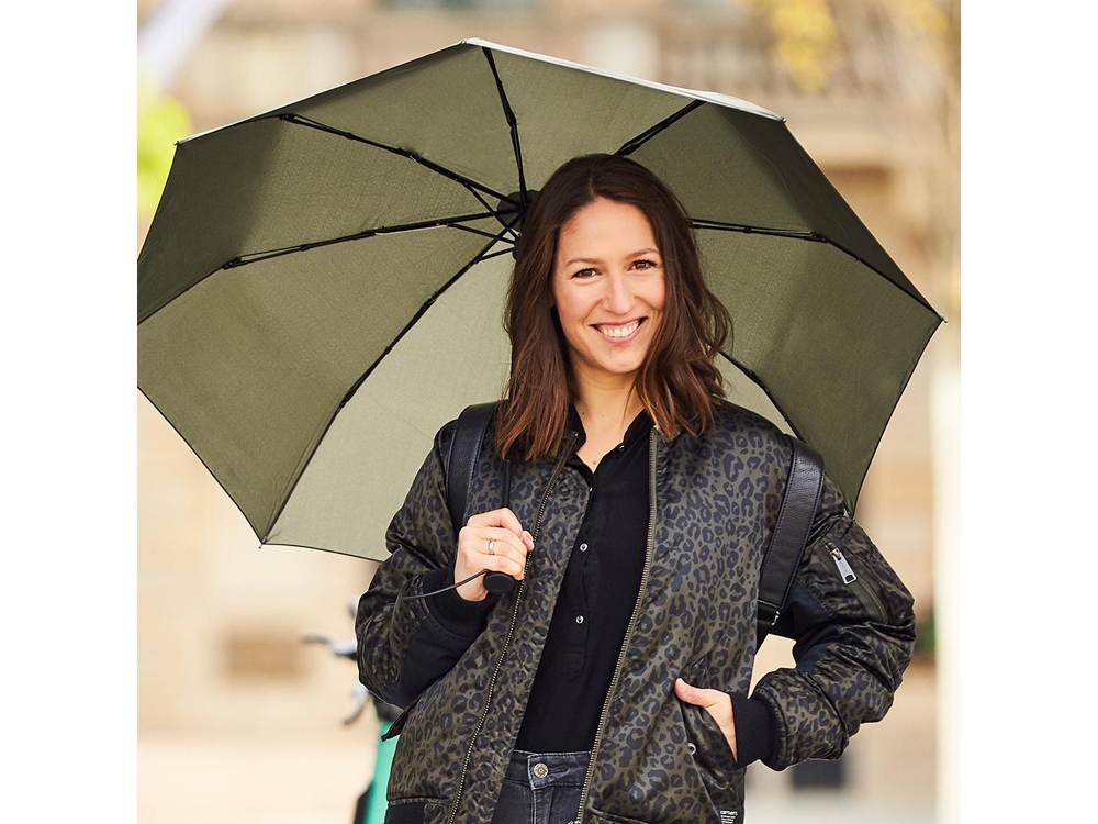 Добротный автоматический зонт с куполом из эпонжа и гибкими спицами из стекловолокна спасет от дождя и выстоит против порывов ветра. Чехол в комплекте