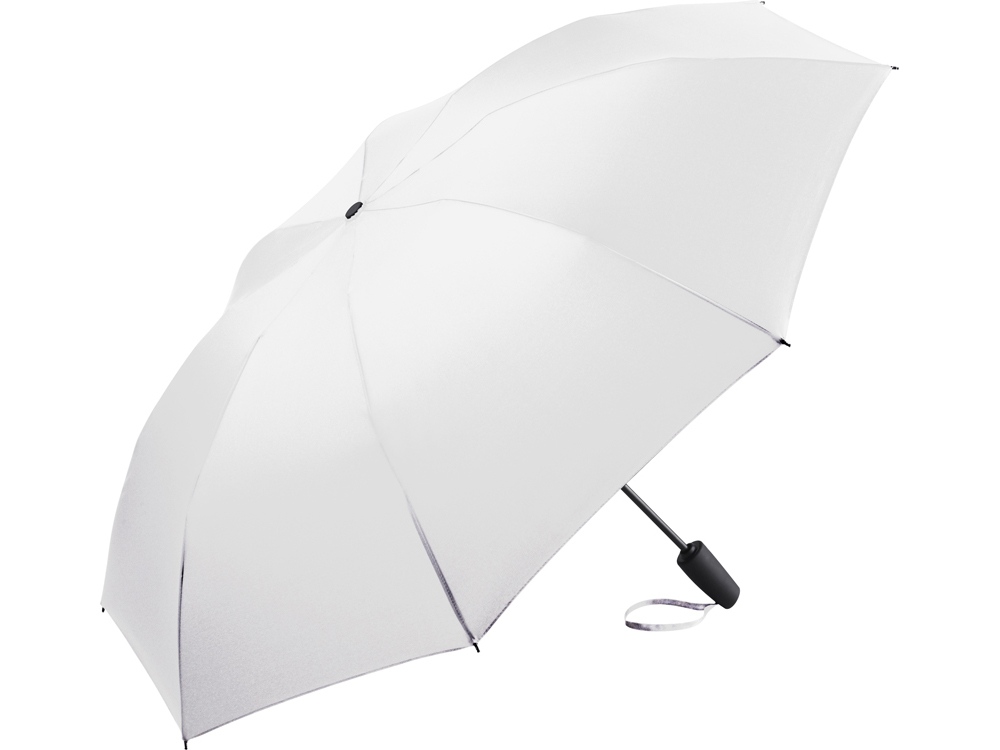 Современный зонт-полуавтомат с обратным сложением внутрь. Очень удобен в использовании, например, во время посадки в машину при складывании зонта вода остается внутри купола. Открывается с помощью кнопки на ручке из мягкого пластика.