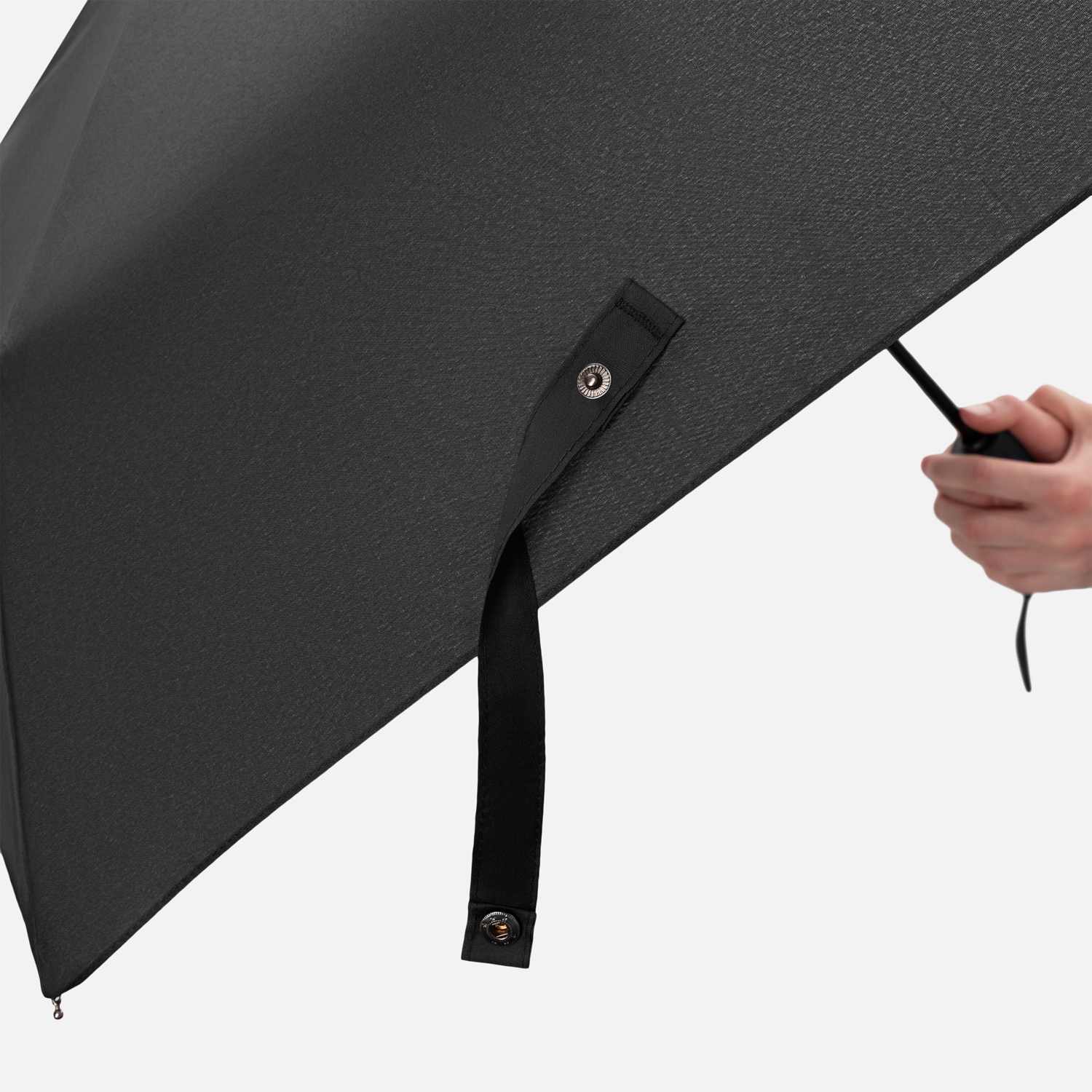 Автоматический механизм позволяет легко и быстро открывать и закрывать купол нажатием кнопки, а система «Антишторм» защищает зонт от повреждений при сильных порывах ветра, позволяя куполу изгибаться без деформации. Безопасный механизм предотвращает резкие движения при складывании, обеспечивая комфортное использование. Материал купола – эпонж 190T – обладает высокой износостойкостью и быстро сохнет. Чехол, идущий в комплекте, и эластичная петля на ручке дарят еще больше удобства при пользовании аксессуаром. PU-покрытие на ручке зонта обеспечивает комфортное и долговечное использование аксессуара: оно устойчиво к истиранию, не скользит в руке и не становится липким.