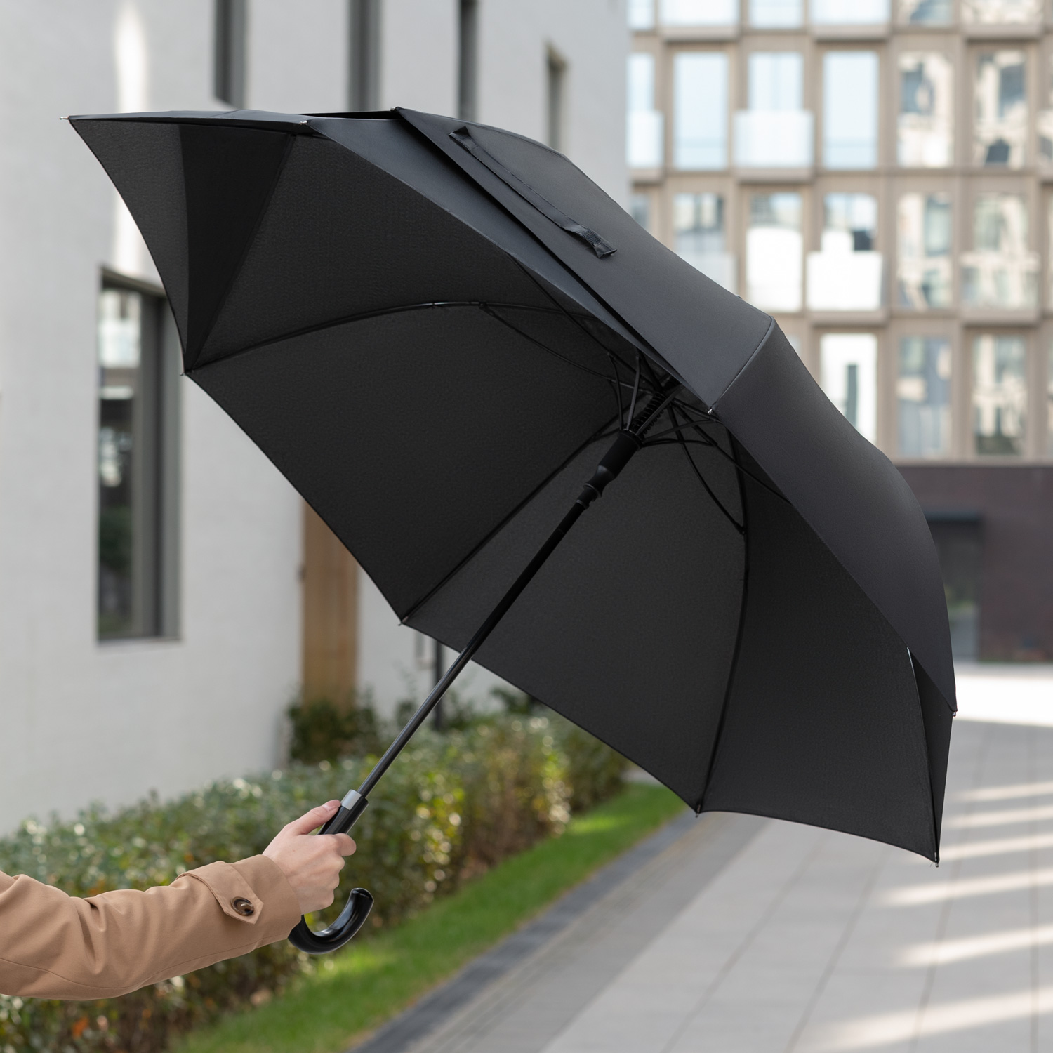 Удобная ручка формы J-Type. Зонт легко открывается надежным полуавтоматическим механизмом: просто нажмите кнопку на ручке, чтобы раскрыть купол.