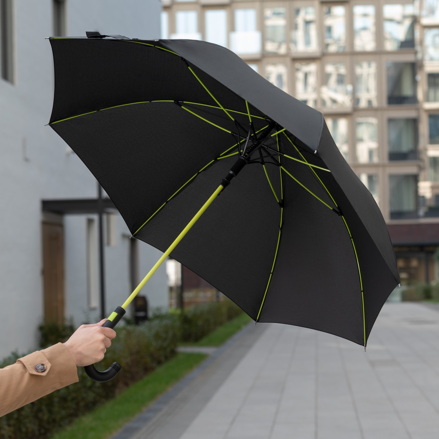 Зонт-трость Quantum, черный/салатовый