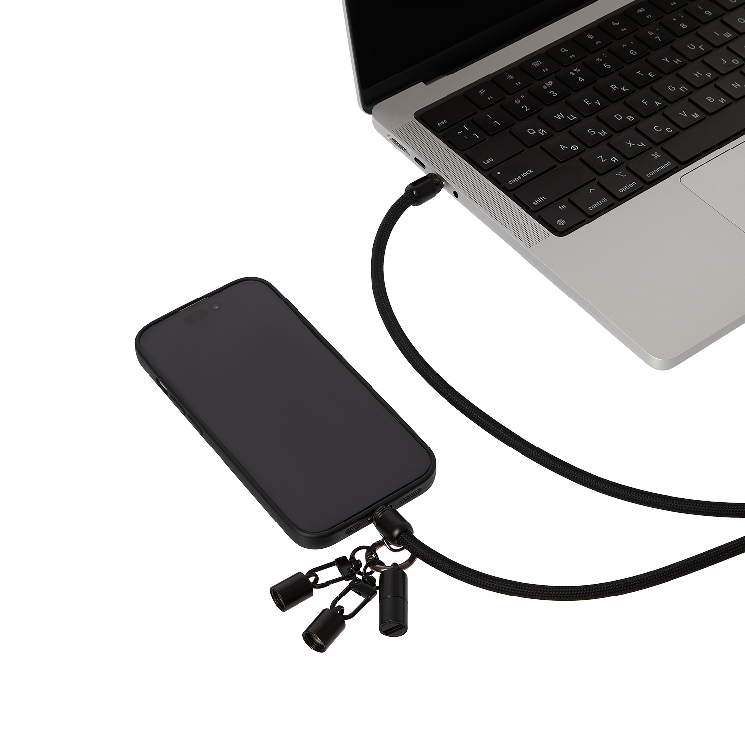 Данный аксессуар не только служит надежным держателем для вашего телефона, но и оснащен встроенным кабелем Type-C к Type-C с коннектором Lightning, что делает его универсальным помощником в зарядке и передаче данных.