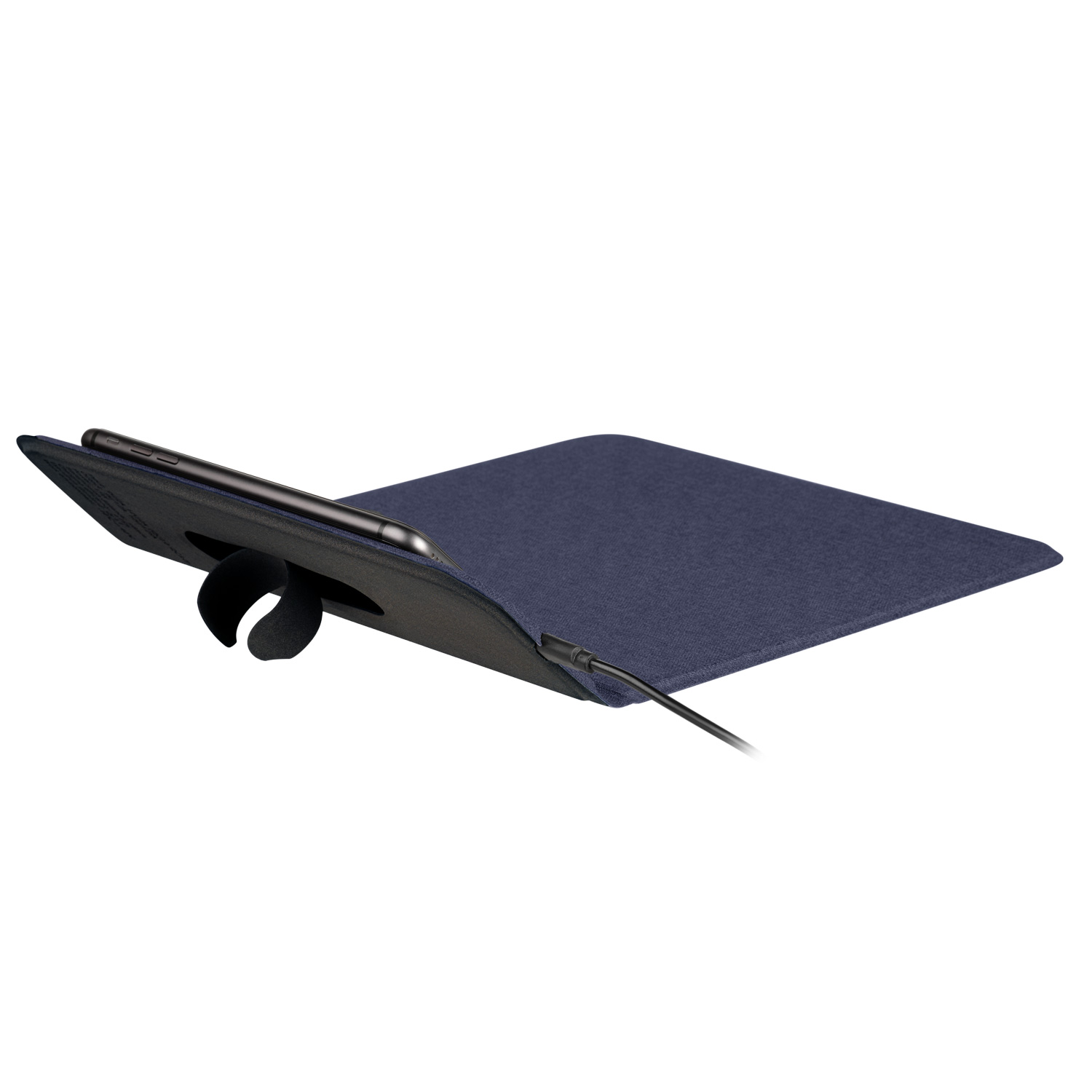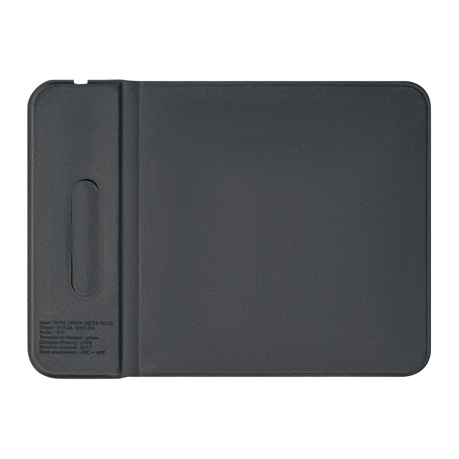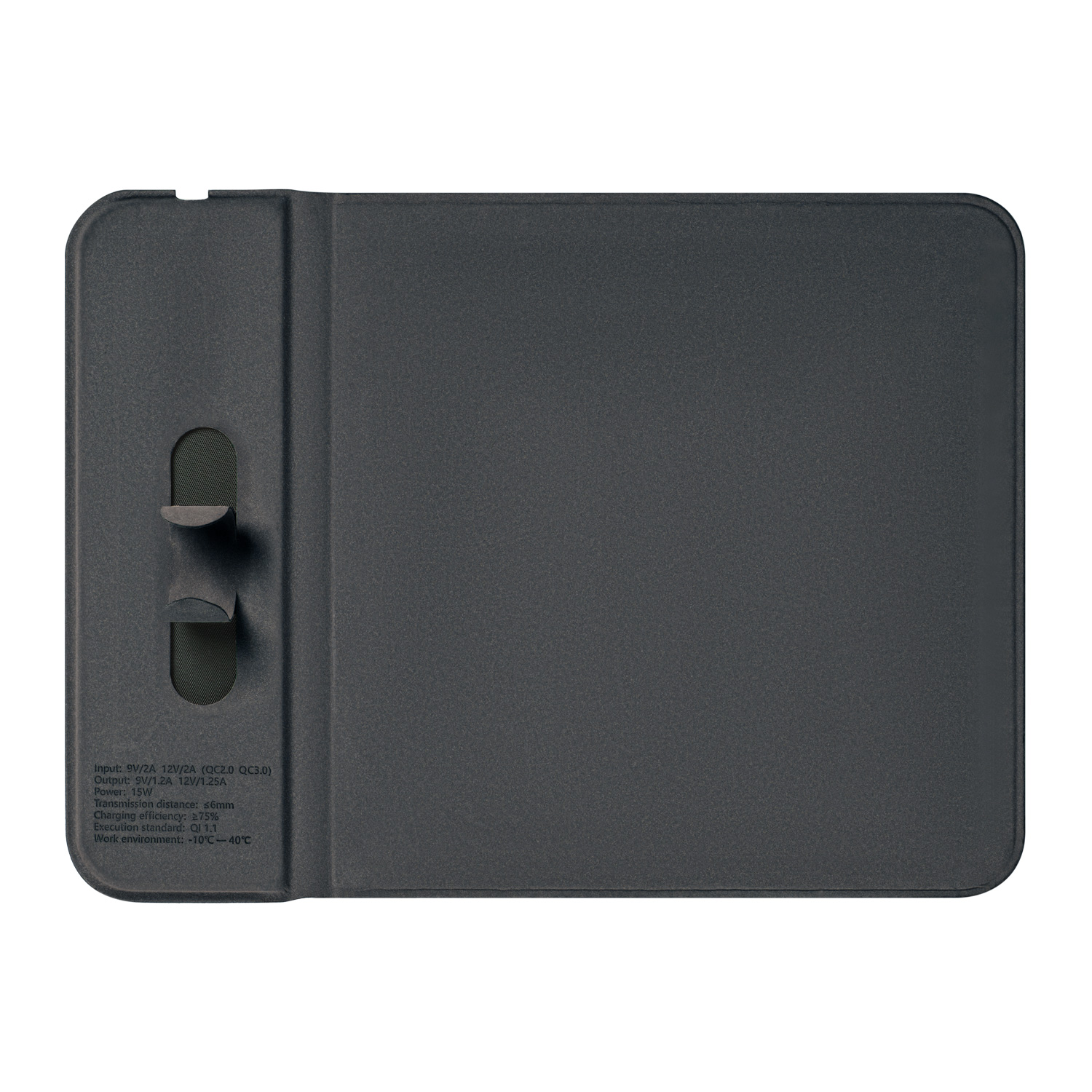 Коврик для мыши с беспроводным зарядным устройством – это функциональный аксессуар, который позволяет экономить место на рабочем столе и работать сразу с несколькими устройствами. Спокойный цвет и минималистичный дизайн делают аксессуар универсальным. Коврик легко превращается в подставку для телефона, для зарядки и удобного просмотра фильмов.