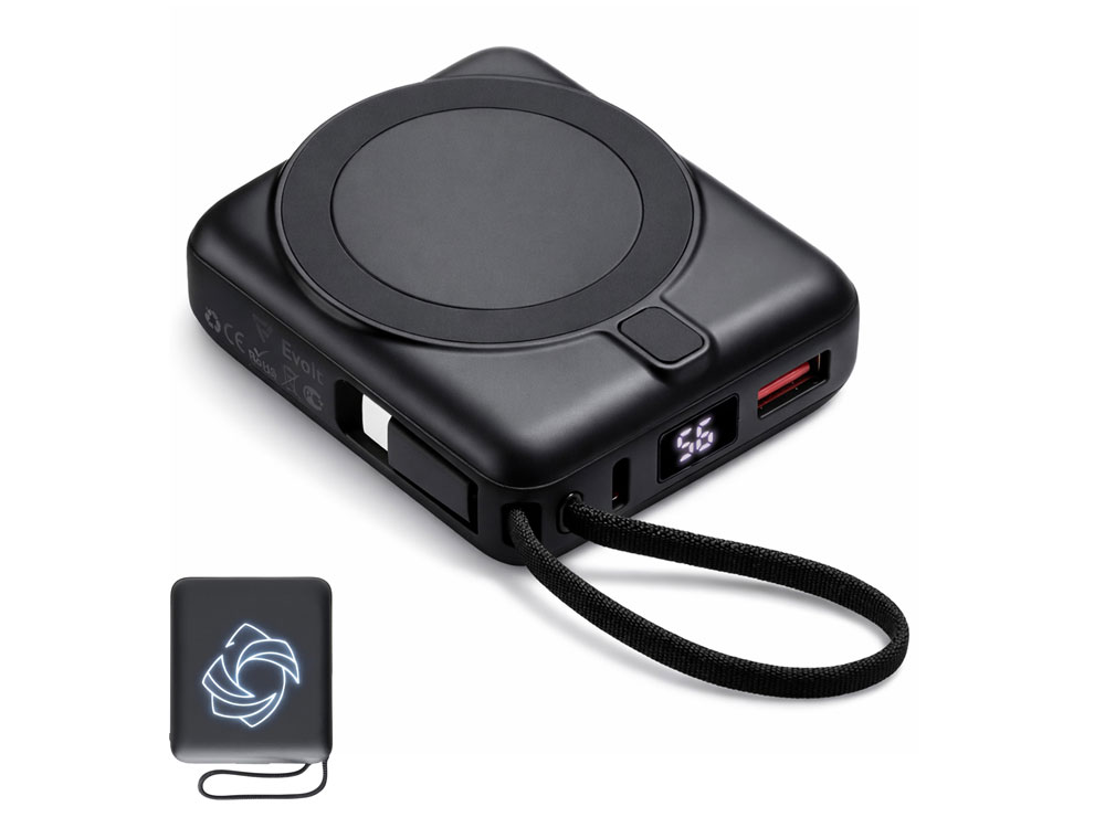 Магнитный пауэрбанк с эффектными возможностями брендирования. Компактный беспроводной аккумулятор с магнитным креплением MagSafe — идеальный корпоративный подарок для клиентов и партнеров. Уникальная особенность: логотип с подсветкой виден даже когда пауэрбанк прикреплен к телефону. Встроенный двусторонний USB-C кабель устраняет необходимость носить дополнительные провода — заряжайте устройства и сам аккумулятор одним кабелем.