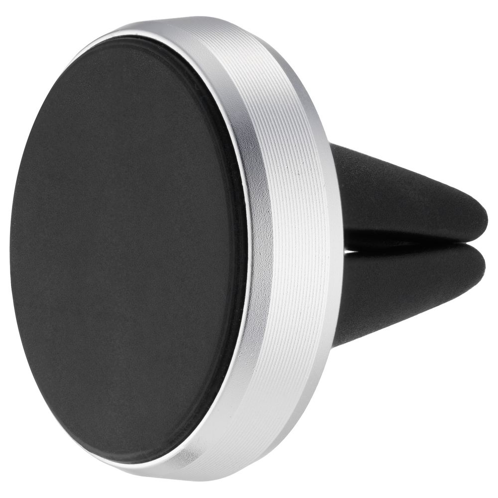 Магнитный держатель для смартфонов с креплением в воздуховод. В комплекте две металлические пластины, которые можно приклеить с помощью двухстороннего скотча (в комплекте) или вложить под заднюю крышку или чехол, чтобы не портить внешний вид телефона.Выдерживает устройство массой до 200 г.
