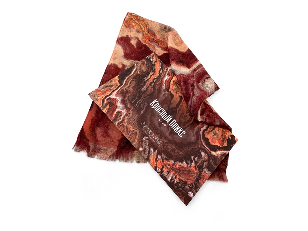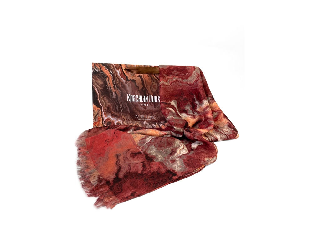 Коллекционный шарф Красный Оникс, выполненный дизайнером Ниной Ручкиной, посвящен минералу Карнеолу (Красному Ониксу). С древних времен этот камень считается символом силы, который носили вожди и победители. В наши дни его любят ценители искусства и драгоценностей, интеллектуалы и почитатели оригинальных украшений. Шарф с уникальной текстурой Красного Оникса подойдет сильным и амбициозным личностям, лидерам по своей натуре Его насыщенная цветовая гамма поможет грамотно расставить недостающие акценты в образе, и сделать его гармоничным. Аксессуар хорошо сочетается с гардеробом в разных стилях, даря радость счастливому обладателю и восхищение окружающим.