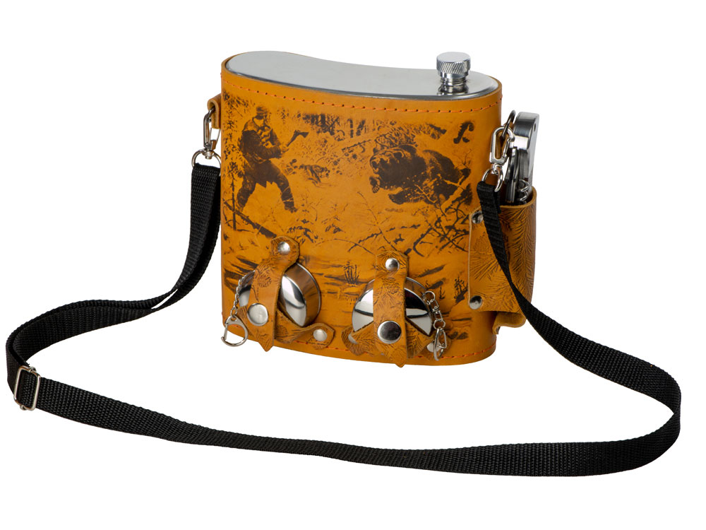 Набор Подарочный: фляга 510/2(рыжая кожа), 1,5 л+ 2 стаканчика+нож