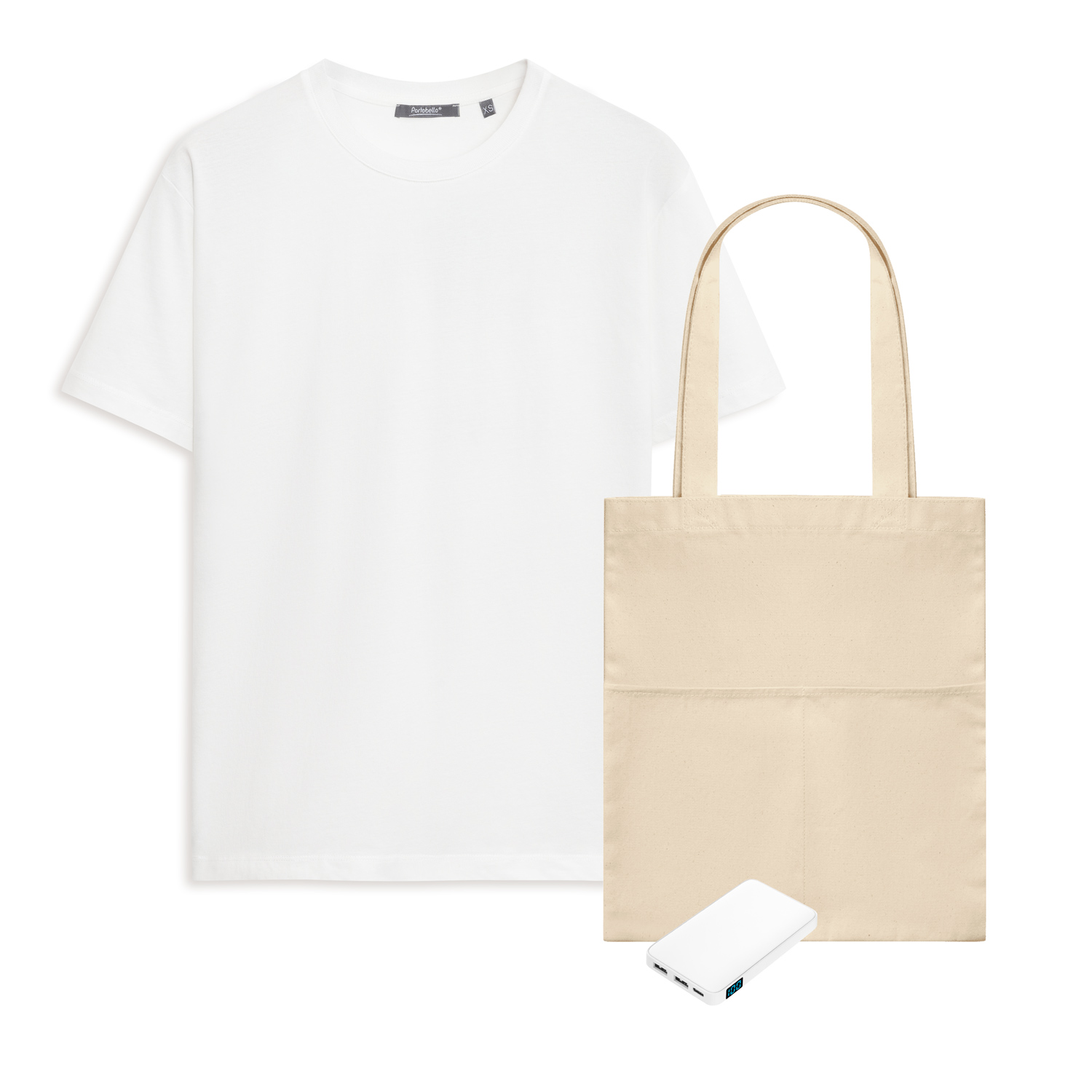 Набор с одеждой KRIS (футболка, аккумулятор, шоппер), белый, M