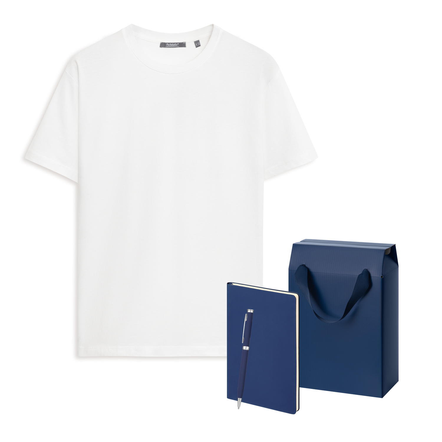 Набор с одеждой KRIS (футболка, ежедневник, ручка), белый/синий, S