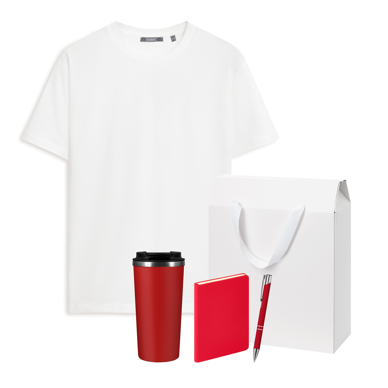 Набор с одеждой KRIS (футболка, термокружка, ежедневник, ручка), красный/белый, M