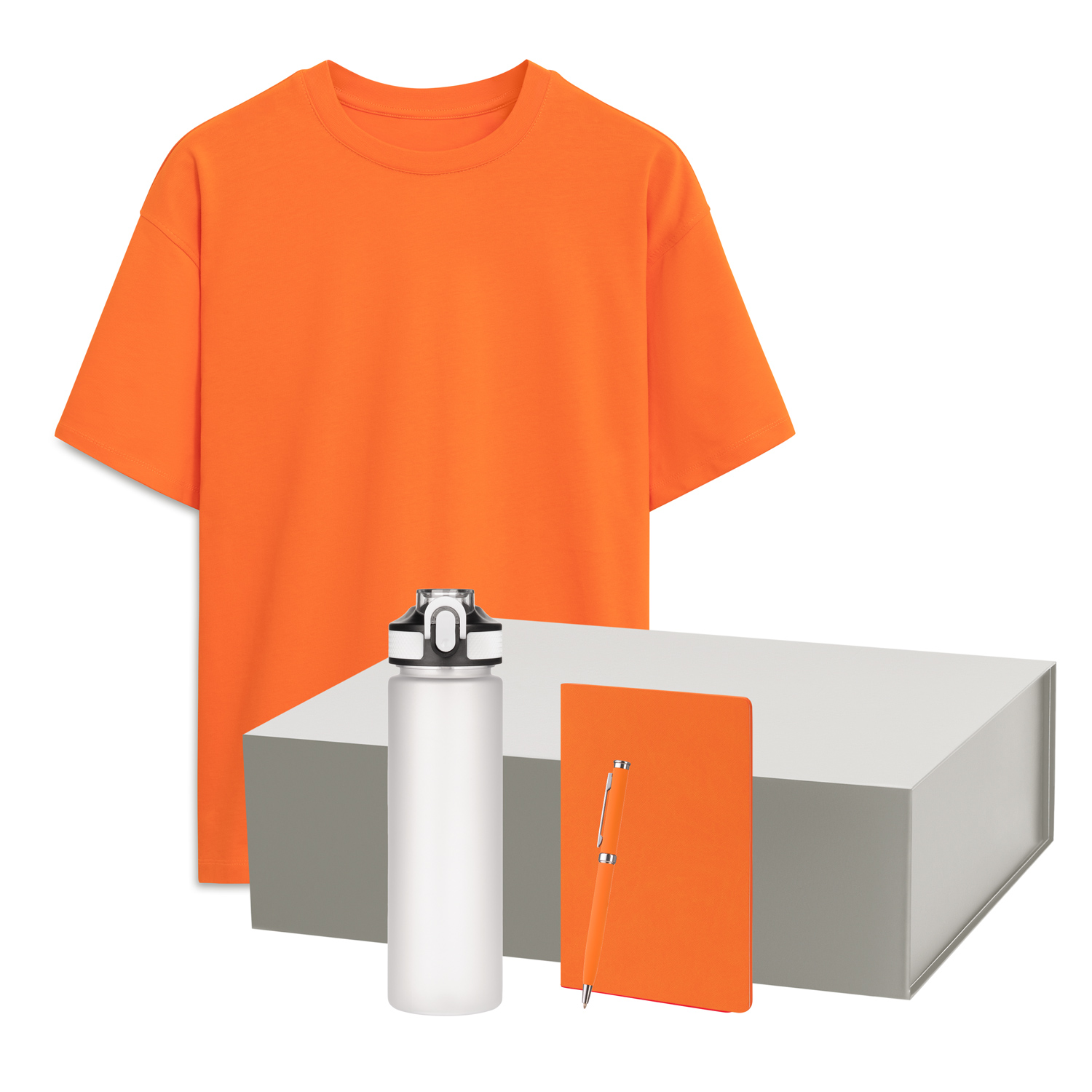 Набор с одеждой RUST NEO (футболка, бутылка, ежедневник, ручка), белый/оранжевый, M/L