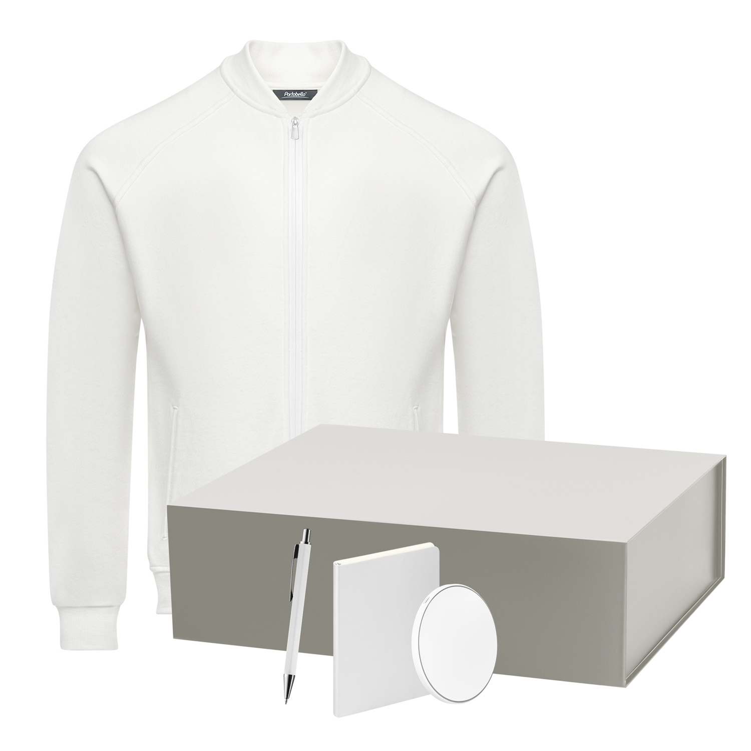 Набор с одеждой TORRES (толстовка, зарядное устройство, блокнот, ручка), белый/серебряный, L