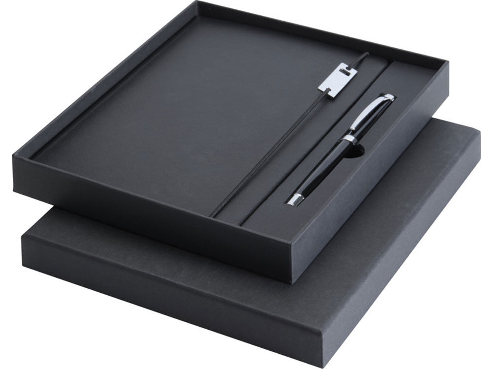 Набор Legato Elegance из блокнота формата А5 в твердой обложке и ручки-роллера, черный/черный