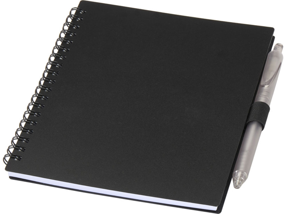 Набор Niove из блокнота из переработанного пластика в мягкой обложке и шариковой ручки (синие чернила) — Черный
