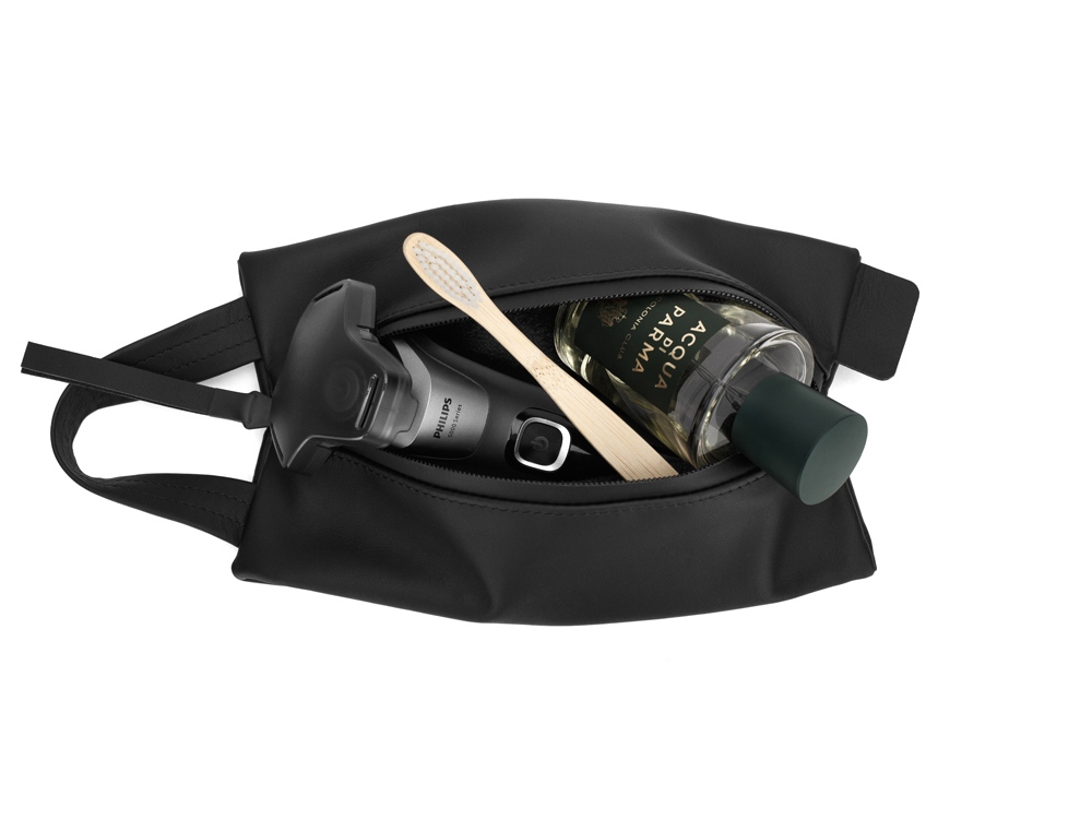 — аккуратное брендирование на ярлычке несессера.