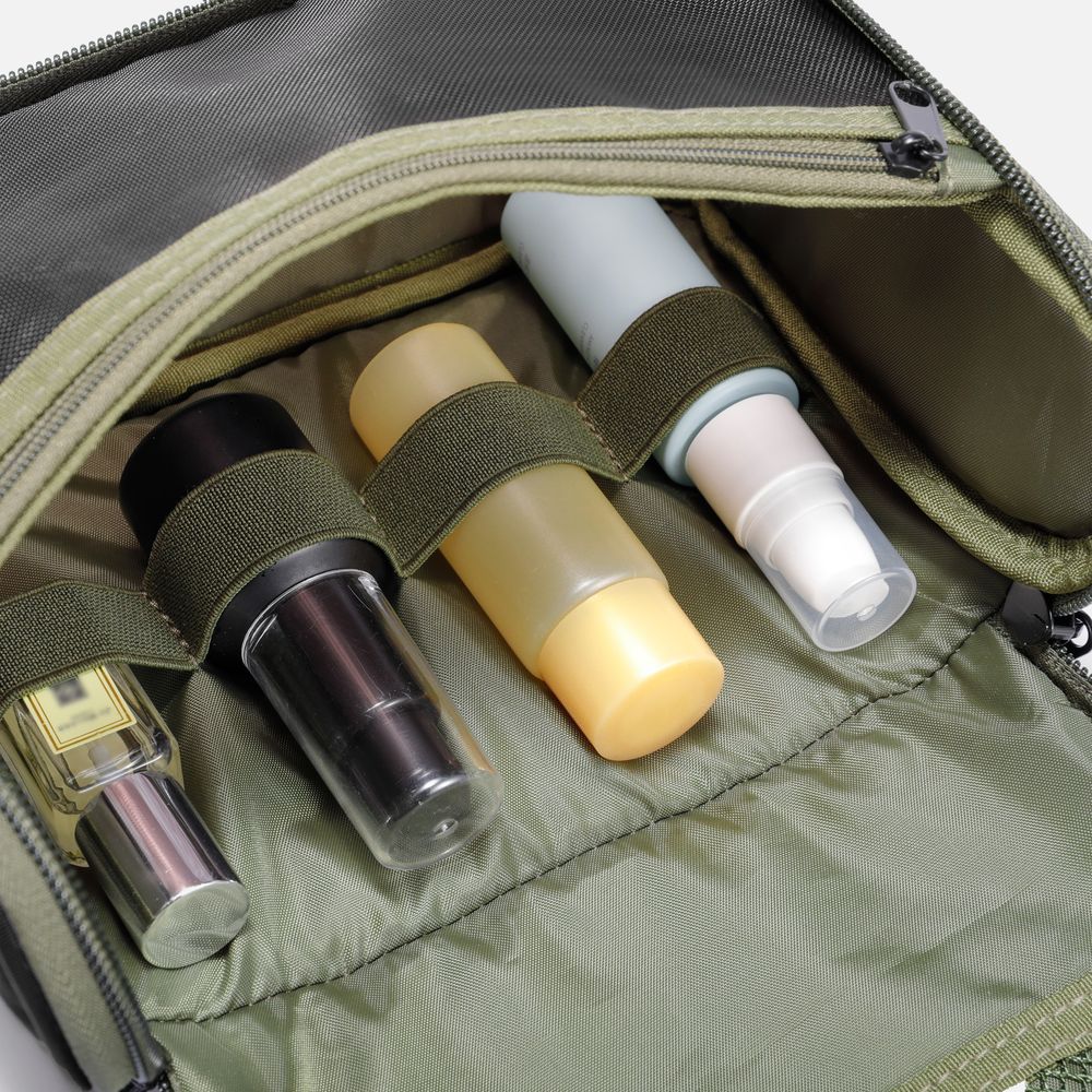 • Эластичные держатели для хранения туалетных принадлежностей и организации пространства в основном отделении
