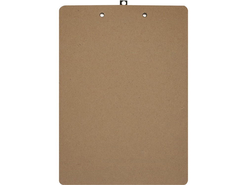 Удобный планшет из МДФ (древесноволокнистая плита средней плотности). Зажим, удерживающий лист бумаги, изготовлен из железа и пластика PP. Размер: 32 x 23 x 0,24 см. MDF.