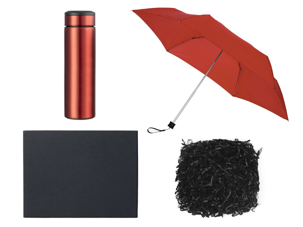 Подарочный набор с зонтом и термосом, красный