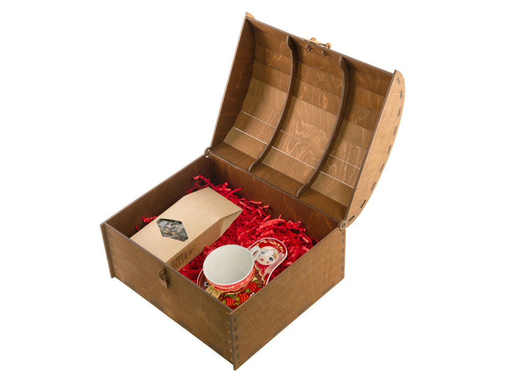 Набор поставляется в большой деревянной коробке в виде сундука с замочком.