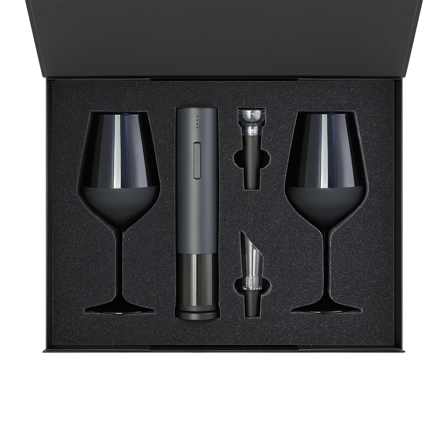 Подарочный набор 2 бокала для вина Sapphire + набор для вина с электрическим штопором Sacramento, в черной коробке
