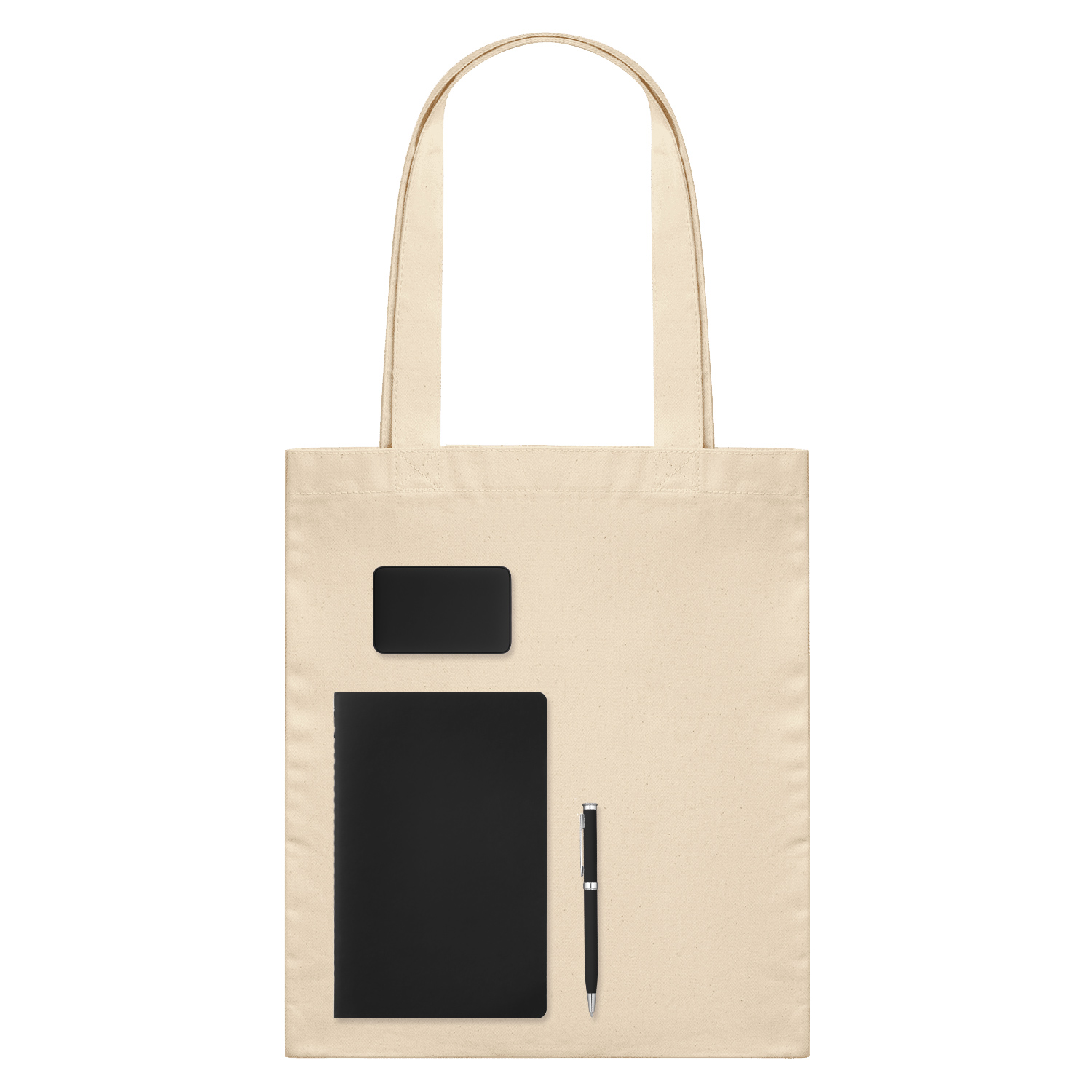 Подарочный набор Alpha slim, черный (блокнот, ручка, зу, шоппер)
