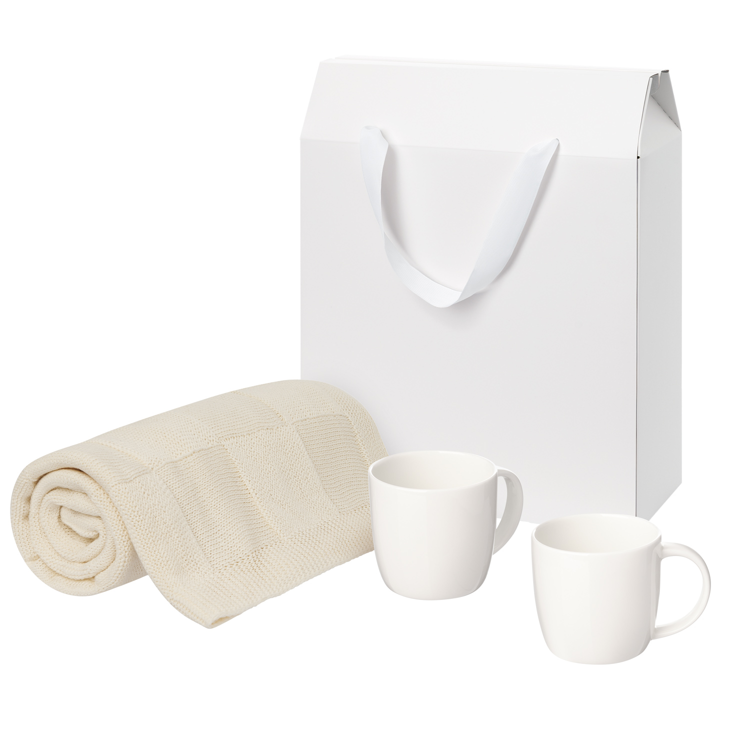 Подарочный набор Dafna, Cella, бежевый в коробке-пакете (две фарфоровых кружки, плед)