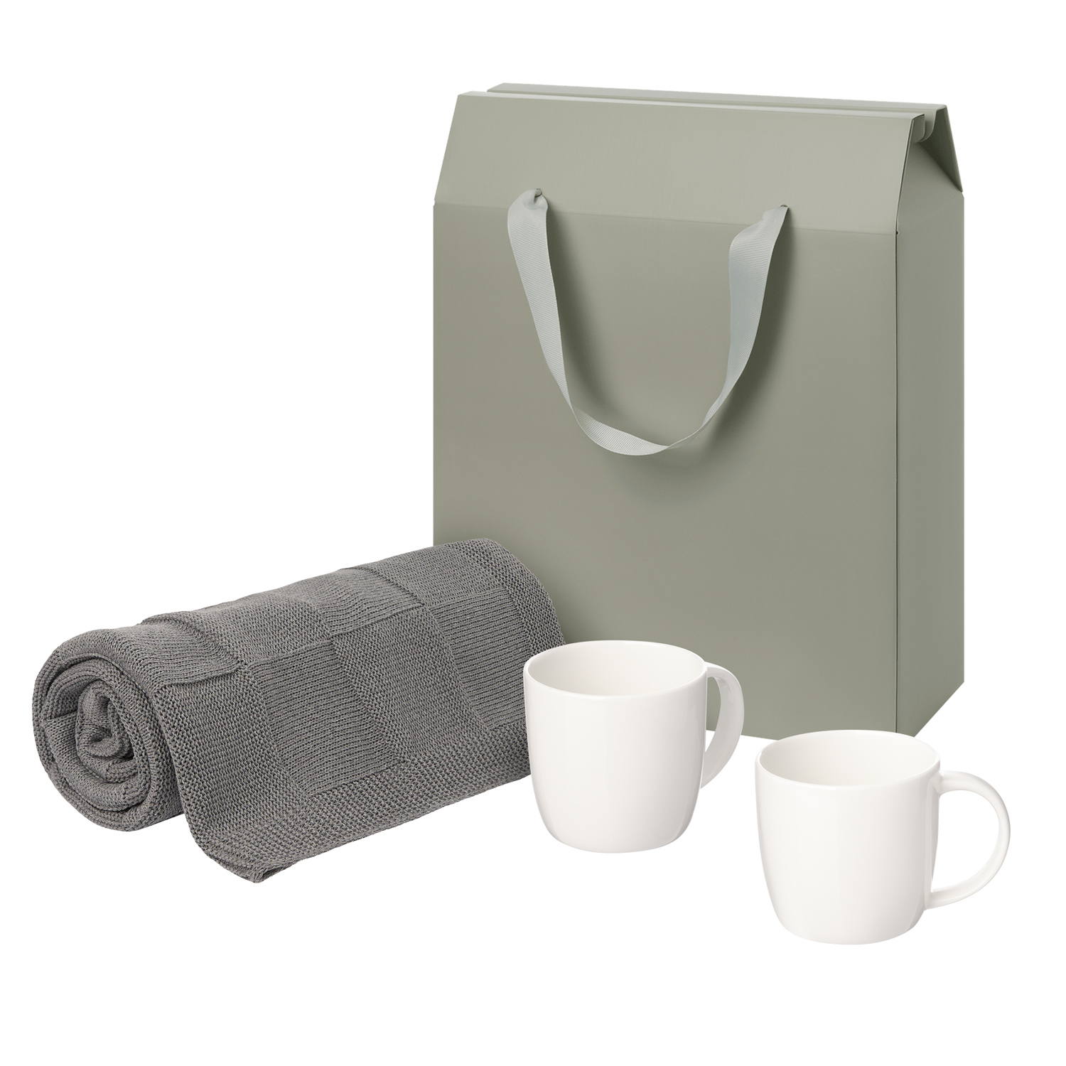 Подарочный набор Dafna, Cella, серый в коробке-пакете (две фарфоровых кружки, плед)