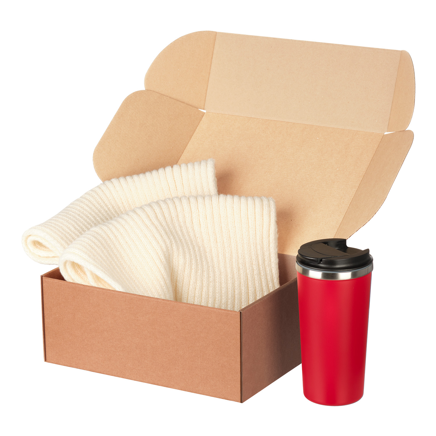 Подарочный набор Forges, бежевый/красный (шарф, термокружка)