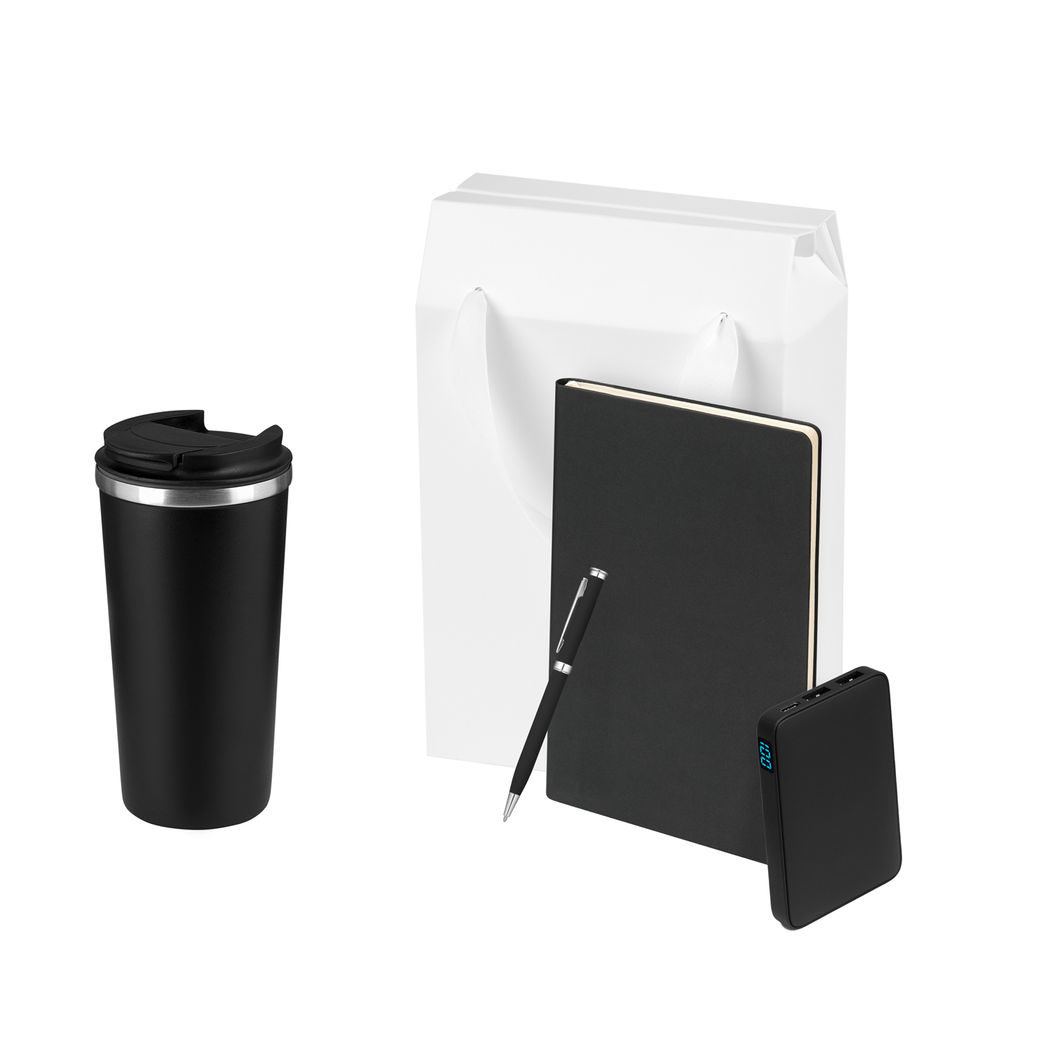 Подарочный набор Palermo, черный (термокружка, ежедневник, аккумулятор, ручка)