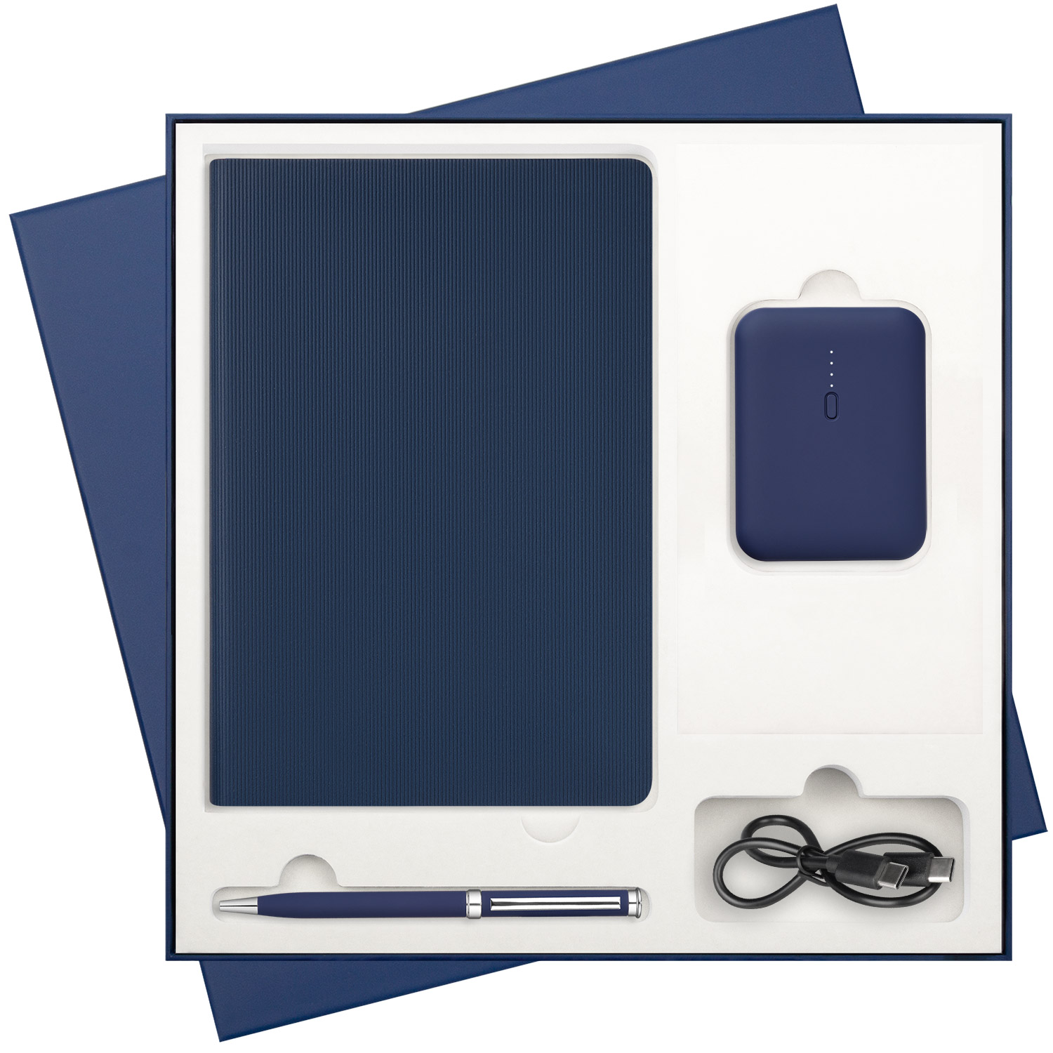 Подарочный набор Rain, синий (ежедневник, ручка, аккумулятор)