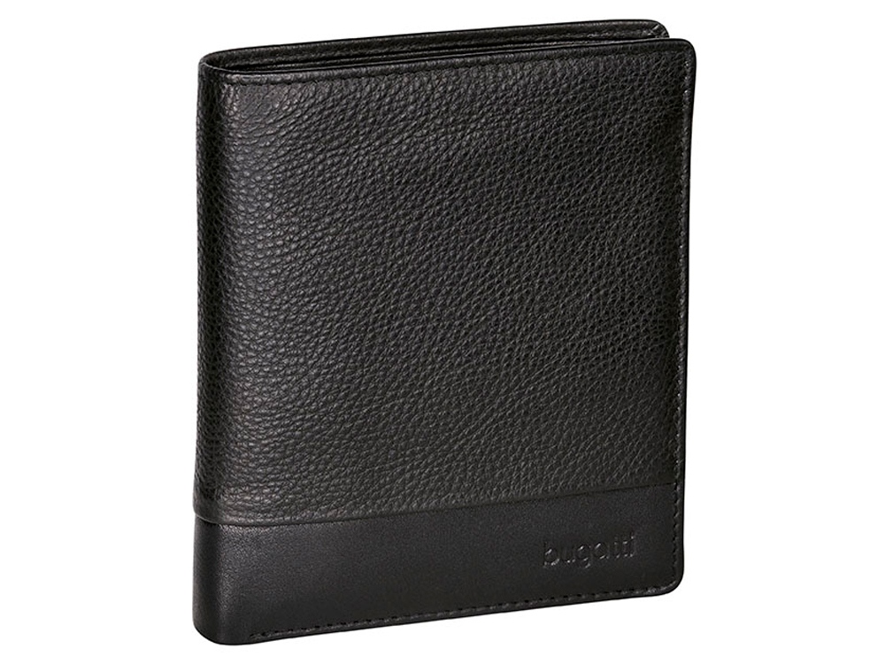 Портмоне BUGATTI Atlanta, чёрное, натуральная воловья кожа, 10,5х2х12,5 см