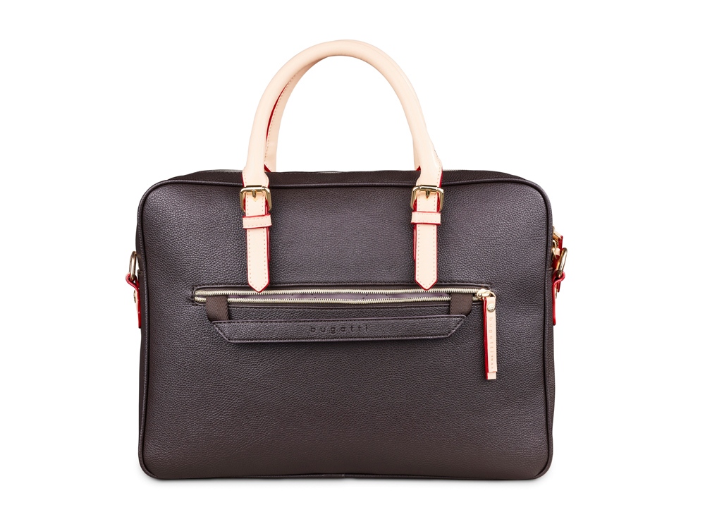 Портфель женский BUGATTI Ella 15», тёмно-коричневый, полиуретан, 38х6х27,5 см