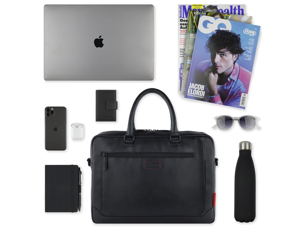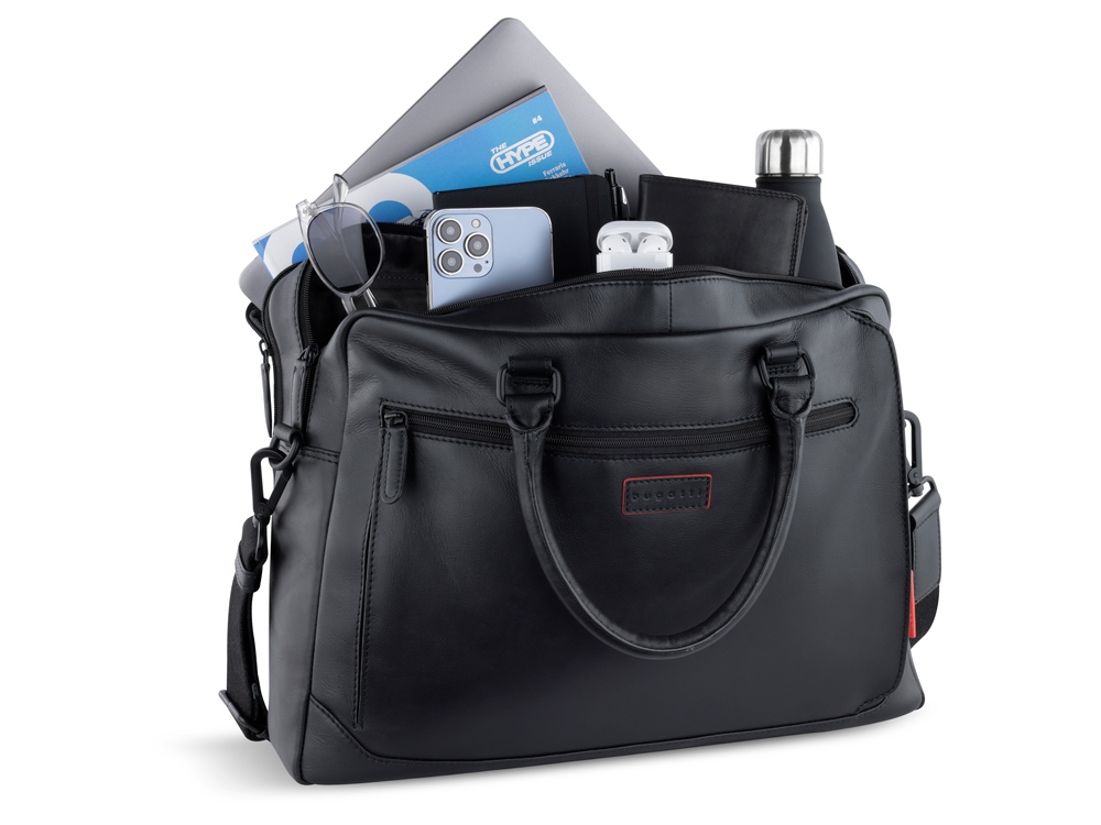 Портфель мужской BUGATTI Clark, чёрный, воловья кожа/полиэстер, 40х9,5х29 см, 10 л