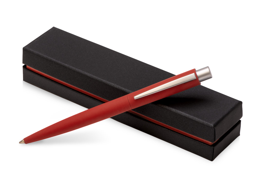 Металлическая шариковая ручка с матовым цветным прорезиненным корпусом. Металлический клип и кнопка в серебристом матовом цвете. Поставляется в красивом черном футляре, внутренний цвет которого идеально сочетается с цветом самой ручки.