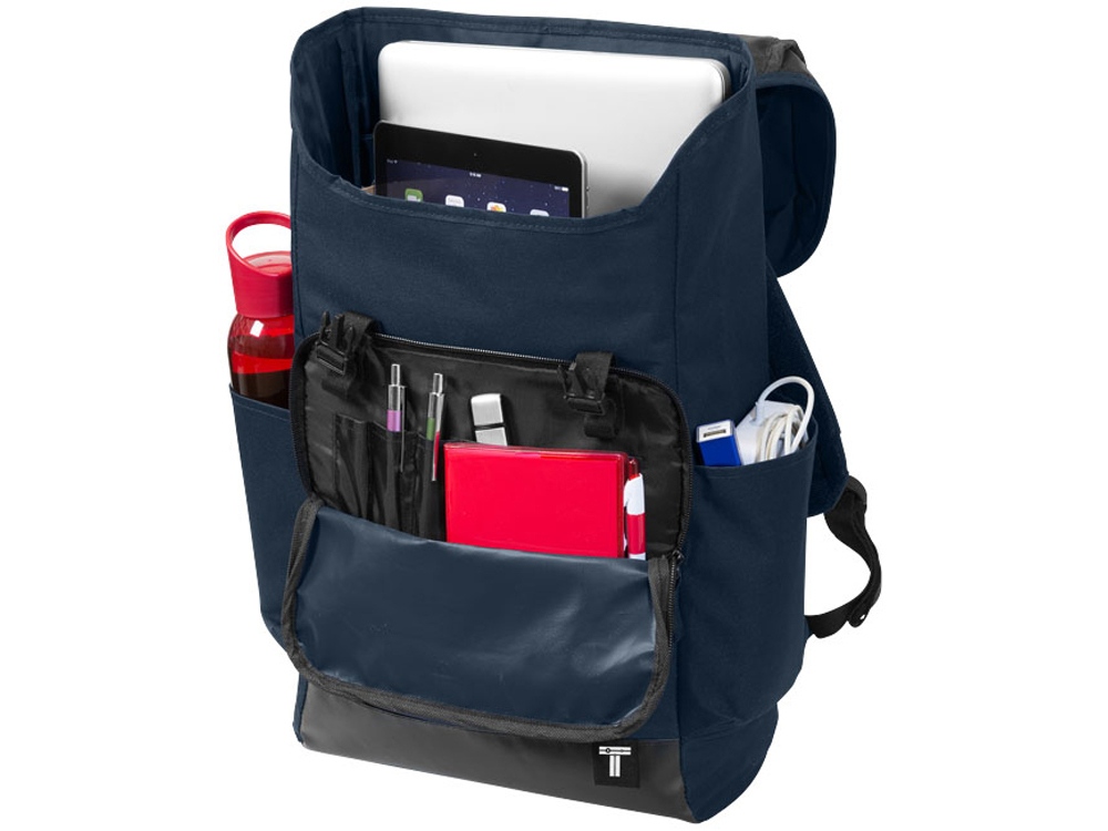 Рюкзак для ноутбука 15,6. Рюкзак для ноутбука 15,6 с дном и з тарпаулина, для легкой очистки. Большой передний карман на молнии для мелочей. Боковой карман для бутылки, застежки клапана можно использовать для фиксации зонтика или дождевика. 300D Полиэстер и тарпаулин.