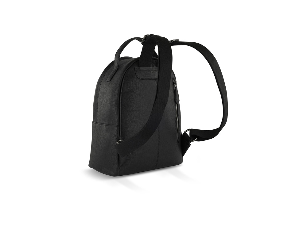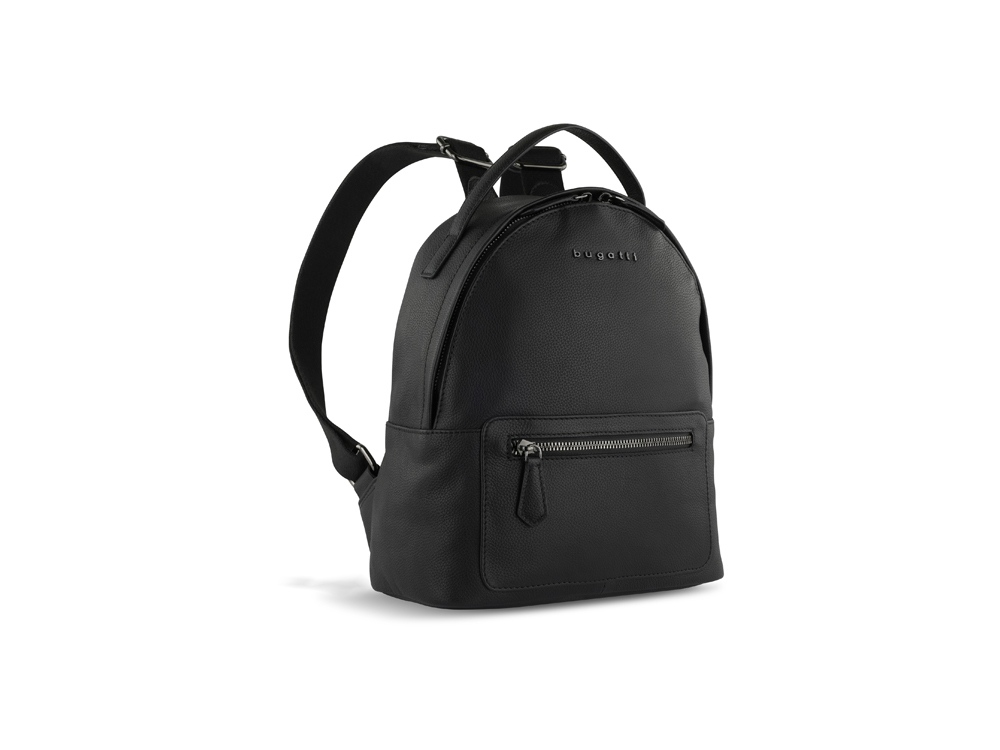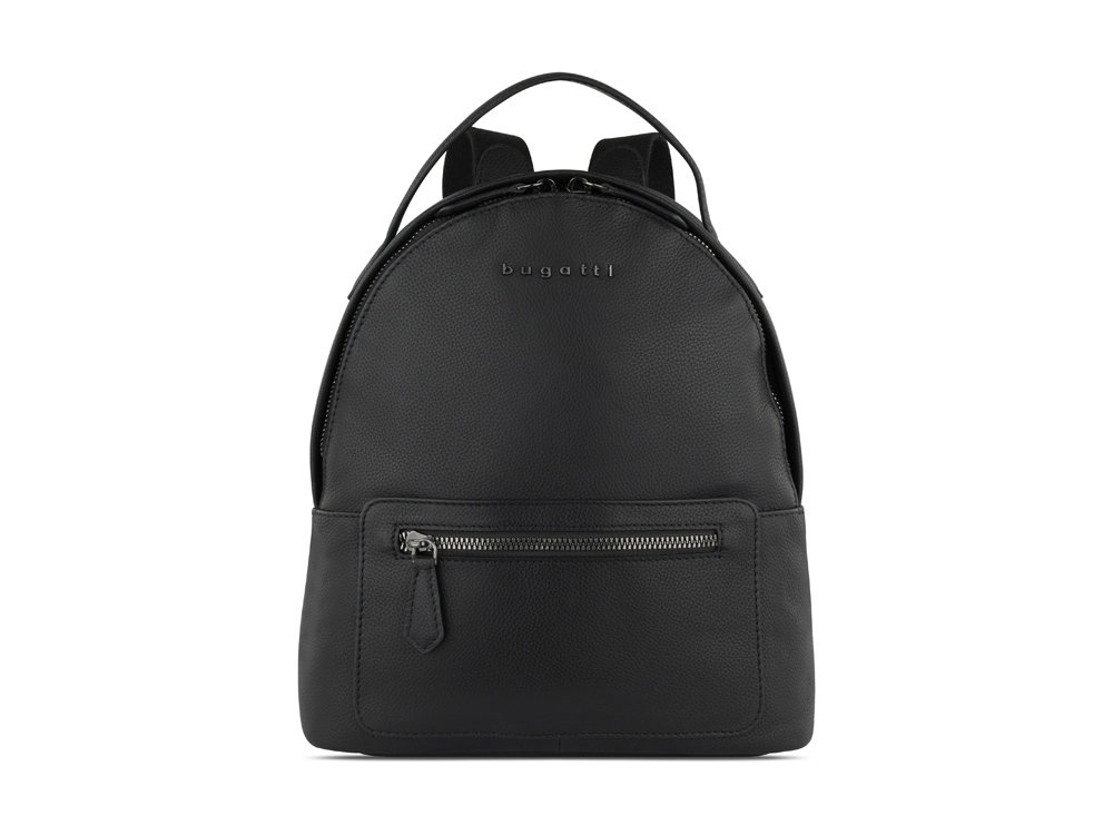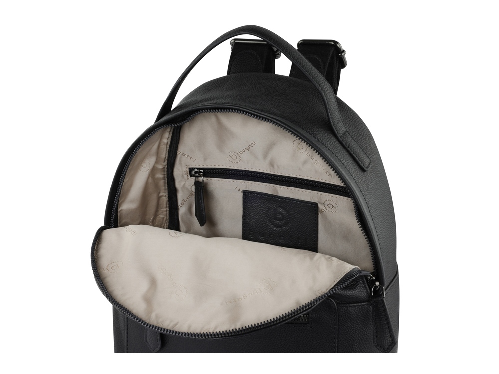 Рюкзак женский BUGATTI Bella, чёрный, воловья кожа/полиэстер, 24,5х12х27 см