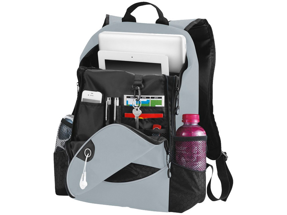 Рюкзак Benton для ноутбука 15 дюймов. Основное отделение на молнии подходит для большинства ноутбуков 15 дюймов и включает отделение с мягкой подкладкой для iPad или планшета. Большой передний карман на молнии с органайзером и держателем для наушников. Два боковых кармана. Усиленная ручка и регулируемые плечевые ремни с мягкими подкладками. Принадлежности не включены. Полиэстер 600D.
