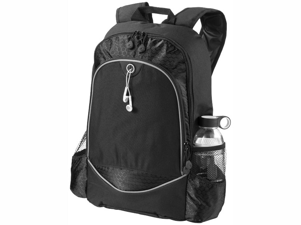 Рюкзак Benton для ноутбука 15 дюймов. Основное отделение на молнии подходит для большинства ноутбуков 15 дюймов и включает отделение с мягкой подкладкой для iPad или планшета. Большой передний карман на молнии с органайзером и держателем для наушников. Два боковых кармана. Усиленная ручка и регулируемые плечевые ремни с мягкими подкладками. Принадлежности не включены. Полиэстер 600D.