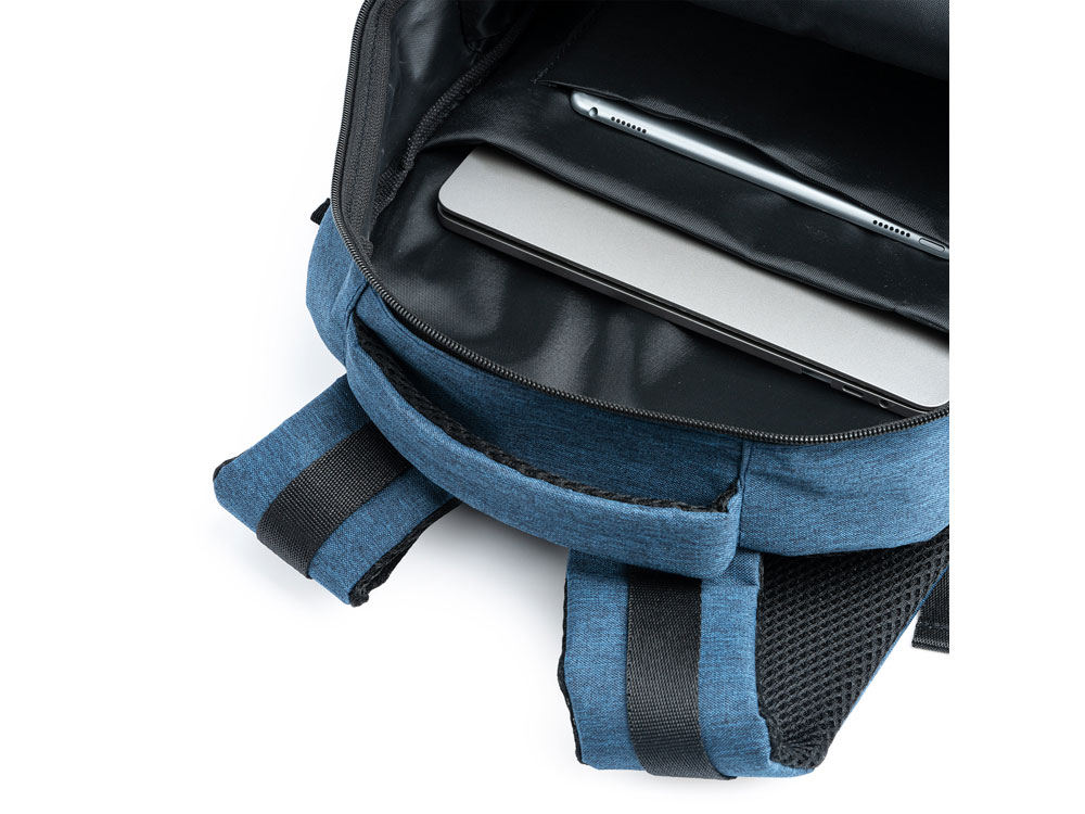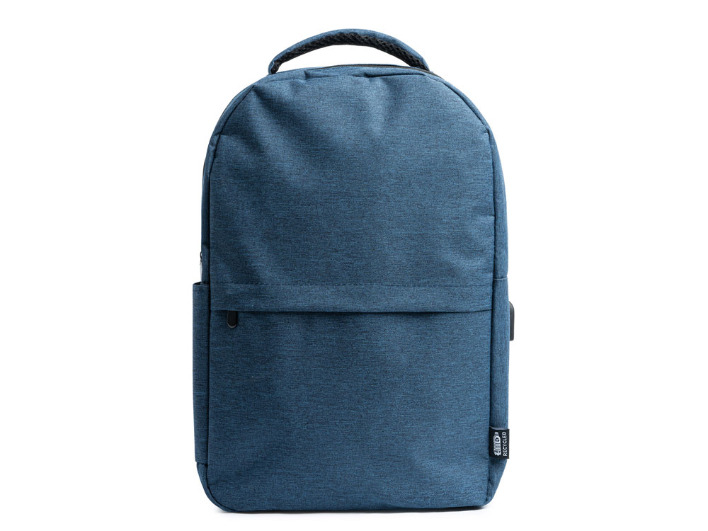 Рюкзак из переработанного полиэстера RPET 600D с эффектным дизайном. Мягкое основное отделение идеально подходит для ноутбука или планшета. Выход USB для подключения повербанка (не входит в комплект). Передний и боковой карман. Мягкие лямки и спинка.