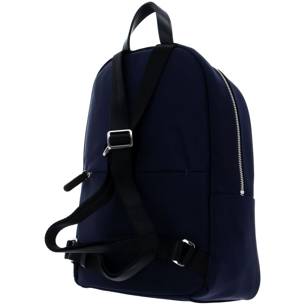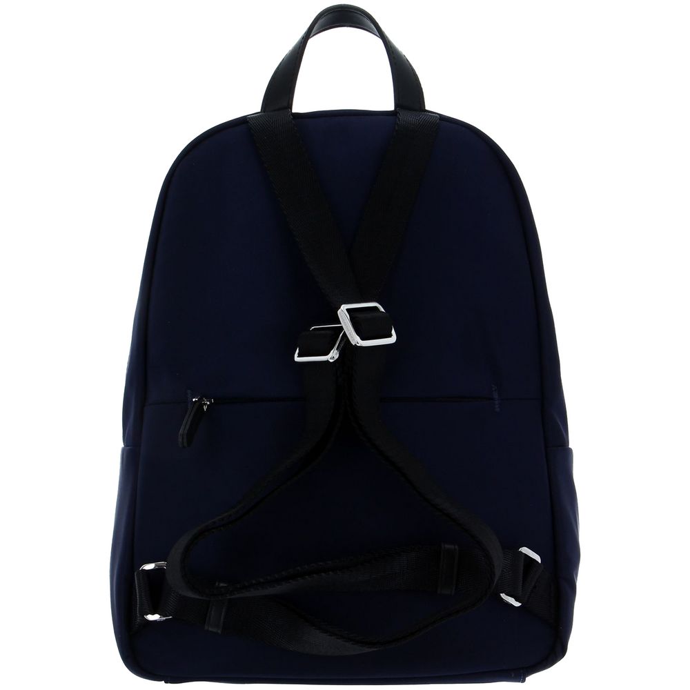 Изготовлен из гладкого влагостойкого нейлона, а также дополнен привлекательной фурнитурой из экокожи и металлизированным логотипом бренда.