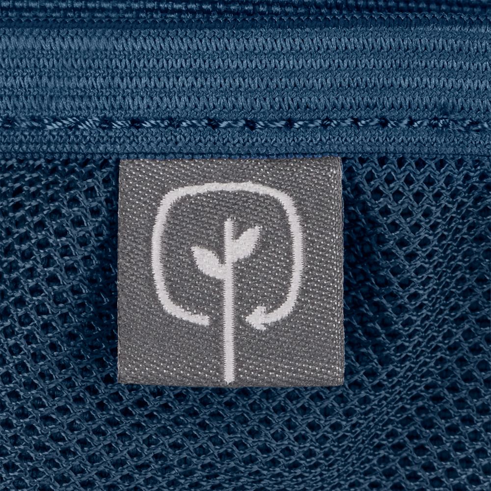 Изготовлен из 100% переработанного материала — на один рюкзак уходит в среднем 12 ПЭТ-бутылок.