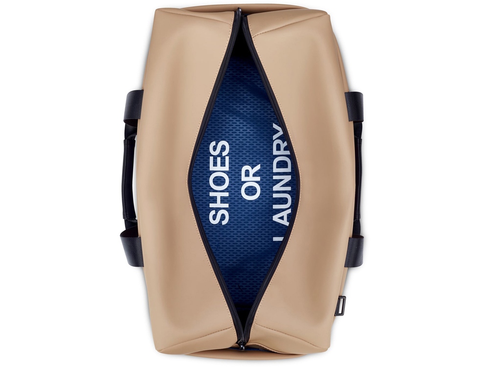 — Эта дорожная сумка имеет большое основное отделение, где есть два кармана для планшета и ноутбука. В этой сумке также есть карман для обуви или белья, доступный снаружи.